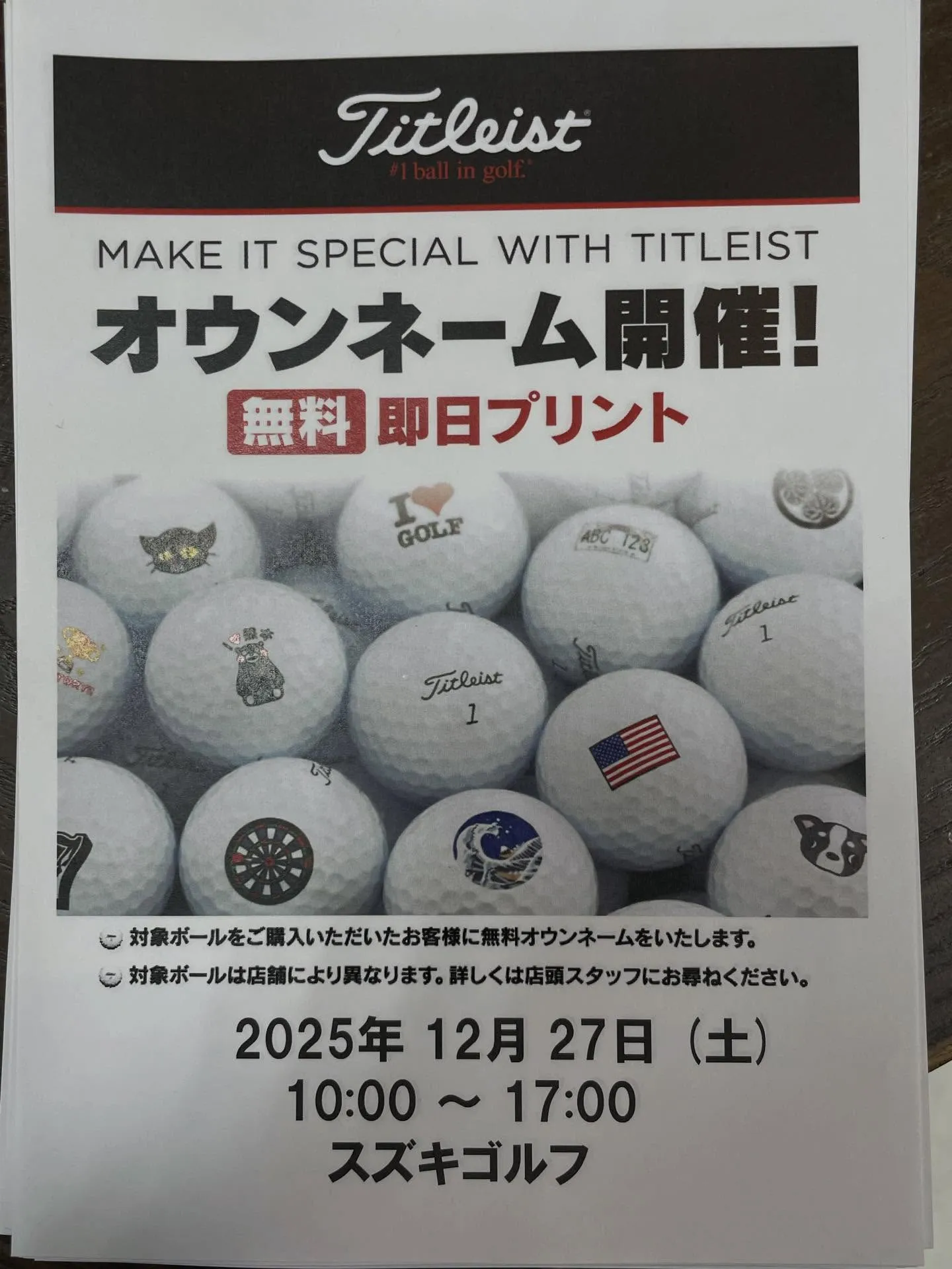 27日はタイトリストボールオウンネームイベント対象のボール1ダースにつき、お好きなマークやお名前を入れさせていただきます♪毎回好評のこのイベントですがボールの在庫がかなり薄くなってきております🙇…